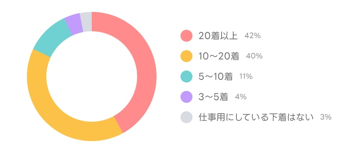 さて、次点でポイントが高かった20着未満の下着をお仕事用に持っているという方の回答も見てみましょう。
