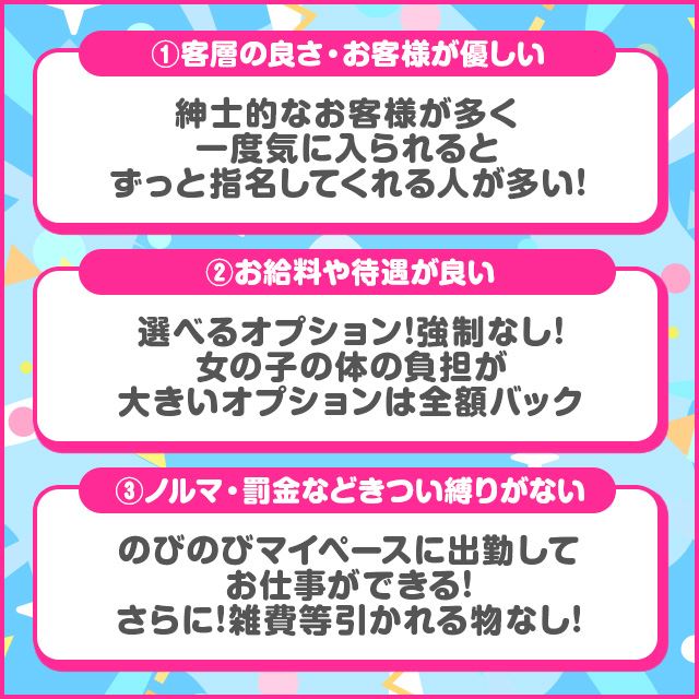 さらに、指名料やオプション料金はすべてプラスで支給されるので、やる気次第でしっかり高収入が可能です!