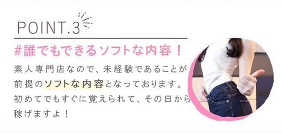 現在在籍している女の子の8割以上が未経験から始めており、同じような経験をしてきた先輩たちがしっかりサポートします!不安な点はスタッフが丁寧にお教えしますので、安心してチャレンジできる環境です。