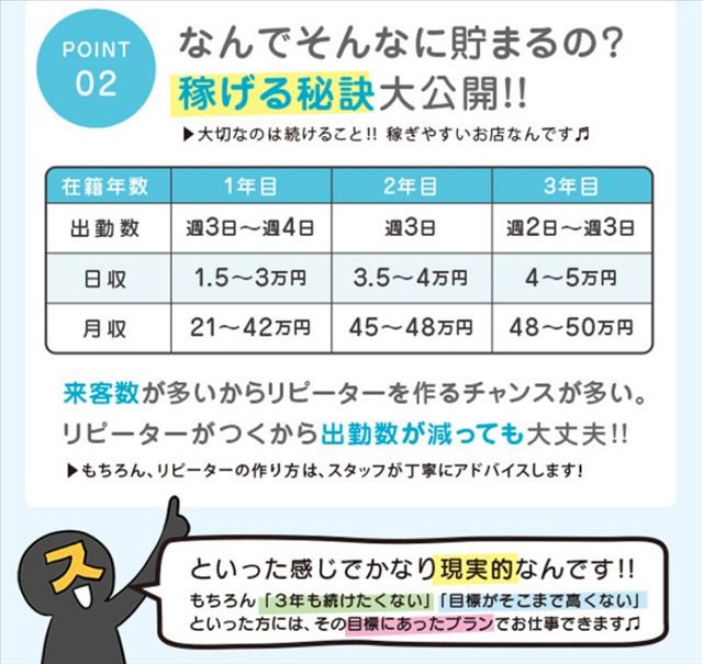 自分のペースで無理なく働きたい方にぴったりの環境です。たくさん稼ぎたい方も、空いた時間だけ働きたい方も、月に数回だけの勤務でも大歓迎。ノルマや罰金などのプレッシャーは一切なく、働き方はあなたの自由です。誰かと比べる必要もなく、気持ちよく続けられるペースを大切にできるお店なので、初心者の方やブランクのある方にも安心してスタートしていただけます。