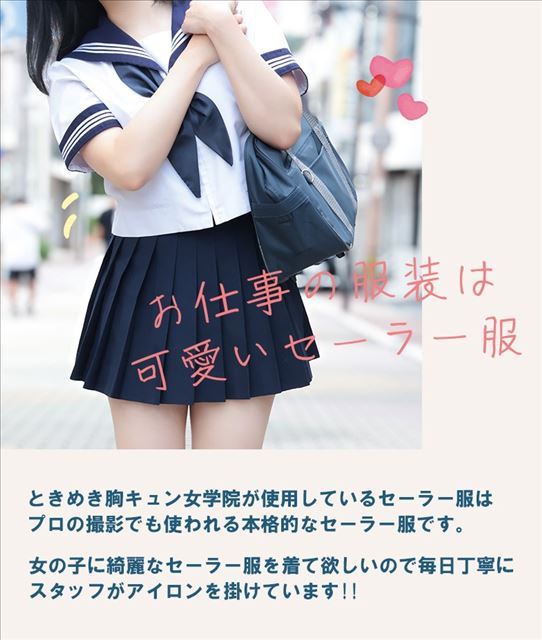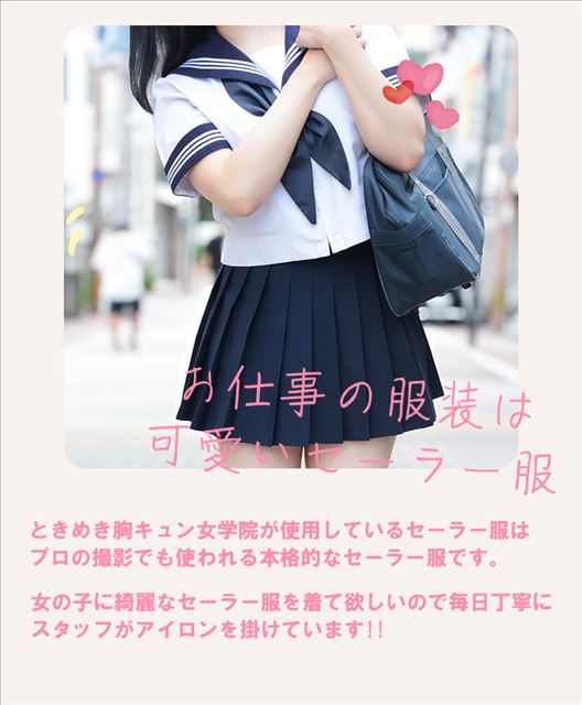 清潔感ある本格セーラー服で、ソフトなサービスを中心とした優しい接客が特徴。