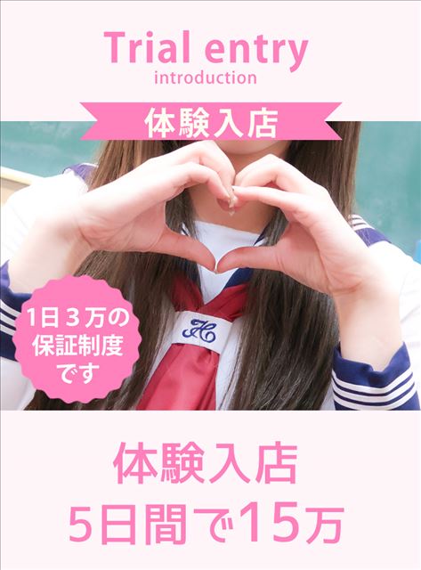 初めての方も安心して働ける体験入店制度をご用意しています。5日間で150,000円を保証!条件は5時間勤務。まずはお店の雰囲気を体験しながら、ゆっくりスタートしていただけます。リスクなくお仕事を始めたい方にピッタリの条件です。