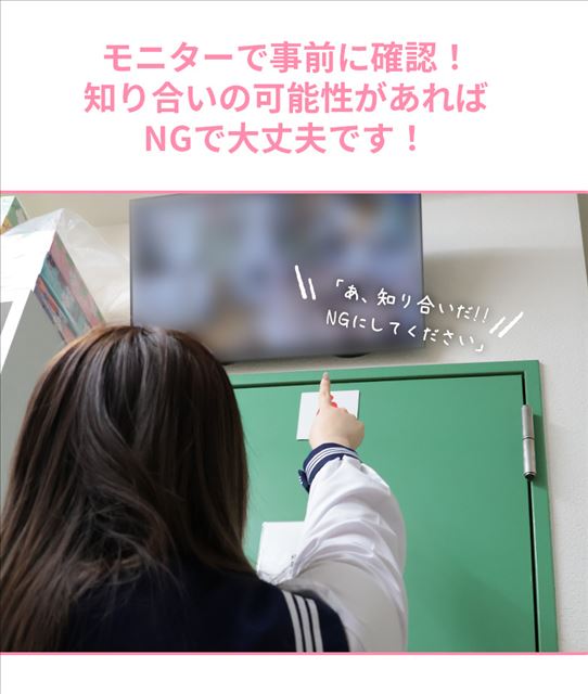 当店では働く女性のプライバシーを最優先に、徹底した身バレ対策を整えています。お客様をご案内する前にモニターで確認でき、必要に応じて目視チェックも可能なため、万が一知り合いが来ても事前に回避できます。「見られたらどうしよう…」という不安を抱えずに働ける環境だからこそ、多くの女の子が長く続けてくれているのも特徴です。誰にも知られずにしっかり稼ぎたい方や、生活を守りながら働きたい方にぴったり。安心のサポート体制で、安全と収入の両立を目指せます。