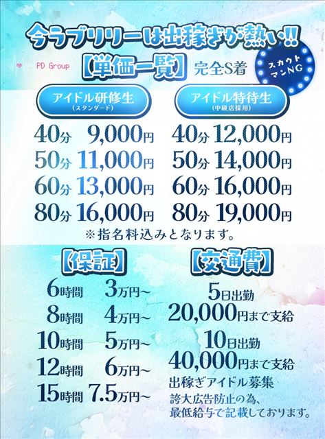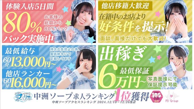 当店では、初めての方でも安心してスタートできるよう、体験入店の5日間は特別に80%バックのキャンペーンを実施しています。短期間でもしっかり収入を得られるため、お仕事の雰囲気を確かめながら無理なく始められるのが魅力です。まずは気軽に体験してみませんか?