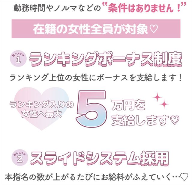 出勤ごとに加算される、入店祝い金10万円キャンペーン。