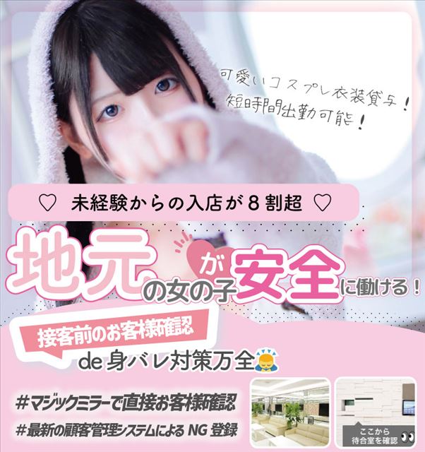 女の子の安全と健康を最優先に考え、完全衛生器具着用を徹底しています。サービス内容も安心・安全を最優先にし、即サービスみたいなハードなサービスは一切ありませんので、リスクを最小限に抑えた環境で働くことができます。さらに、月1回の提携クリニックでの性病検査を受診してもらい、全ての女の子が健康管理をしっかりと行っています。