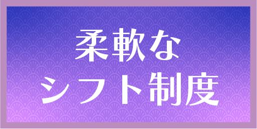 当店では、何よりも女性の生活を大切に考えています。ご自身のライフスタイルに合わせて「好きな日」「好きな時間」でシフトを提出できるので、無理なく働ける環境を整えています。さらに、「もっと出勤したい」や「少しペースを落としたい」などの要望にも柔軟に対応。出勤を強制することは一切ないため、自分らしく働けますよ!