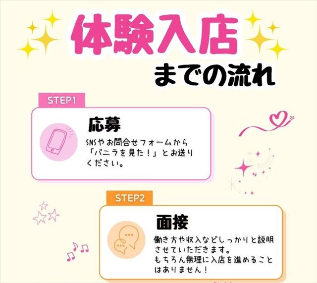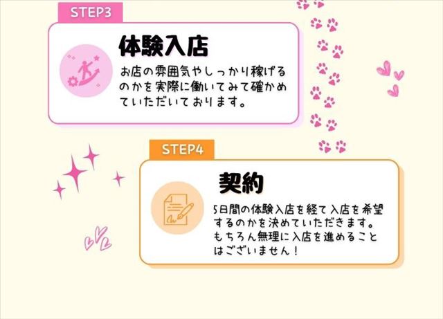 また、働きやすい環境を整え、高収入のコツもお伝えします。ストレスなく稼げることが何より大切と考え、スタッフ一同であなたを応援します。