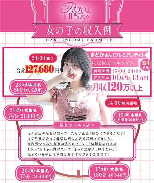 福岡・中洲でトップクラスの人気を誇るロイヤルリップスでは、遠方からの出稼ぎ希望者を大歓迎。家具・家電付きの宿泊施設完備で、送迎もあるため土地勘がなくても安心です。13部屋を備えた大型店舗で集客力も抜群なので、新人さんでも安定して働けます。さらに体験入店は5日間・時給1万円保証で、未経験でも無理なく高収入を目指せる環境です。短期でも長期でも、自分のペースでしっかり稼げます。