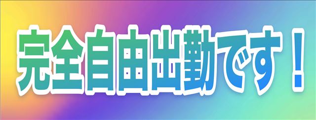 | 勤務日 | 完全自由出勤、自分でシフト選べます。 |