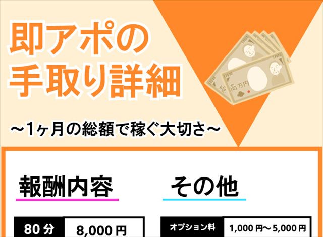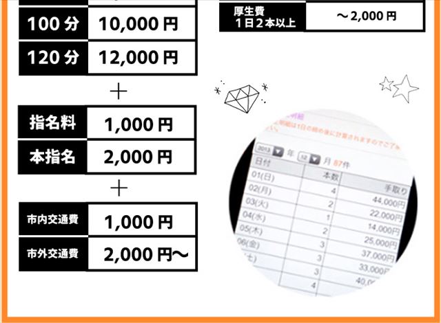 | 勤務日 | 自由出勤 当日出勤OK あなたのペースで好きなだけ稼げる環境です |