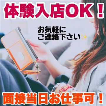 『即日体験って??』ご連絡いただいたその日に体験入店ができることです。正式入店ではないので体験してみて合わないと思ったら無理に入店する必要はありません!もちろんそのまま正式入店も可能です。とにかく今!お金が必要!その日だけ!でも大歓迎☆必要なものは・顔写真付きの身分証明証・本籍地記載の住民票だけで大丈夫です。必ず稼げ…