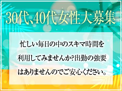 | 勤務日 | 完全自由出勤♪ アナタの生活に合わせたお時間で 調整可能です♪ |