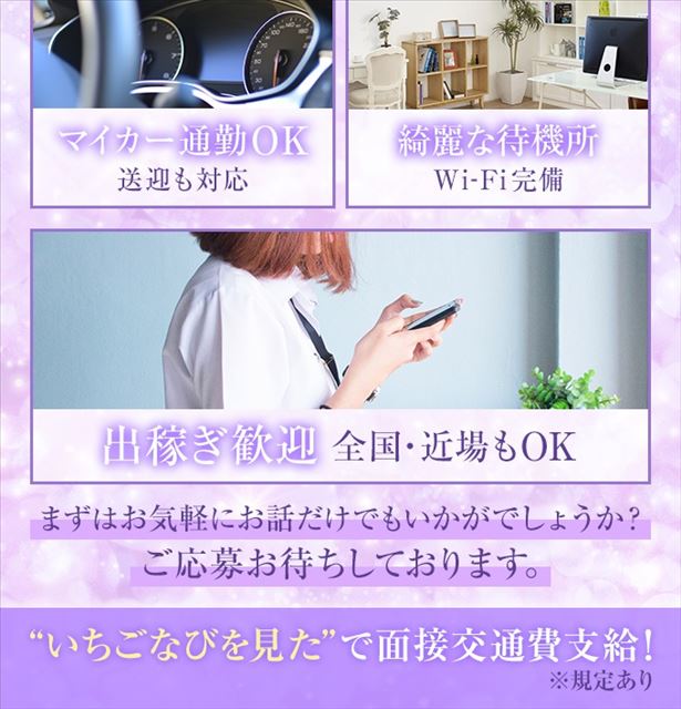 派遣型(デリバリーヘルス)だから店舗に縛られることなく、自分のペースでお仕事しやすいのも魅力♪