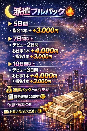 本日は店舗大型工事のため、誠に勝手ながらお店をお休みとさせていただきます。✨ 明日からフル稼働で営業再開! ✨ガンガン稼ぎたい方、チャンスです🔥⸻📊【直近の給与明細 大・大・大公開】📊▶ 8時間勤務・通常給:¥80,000・フルバック:¥103,500▶ 10時間勤務・通常給:¥109,…