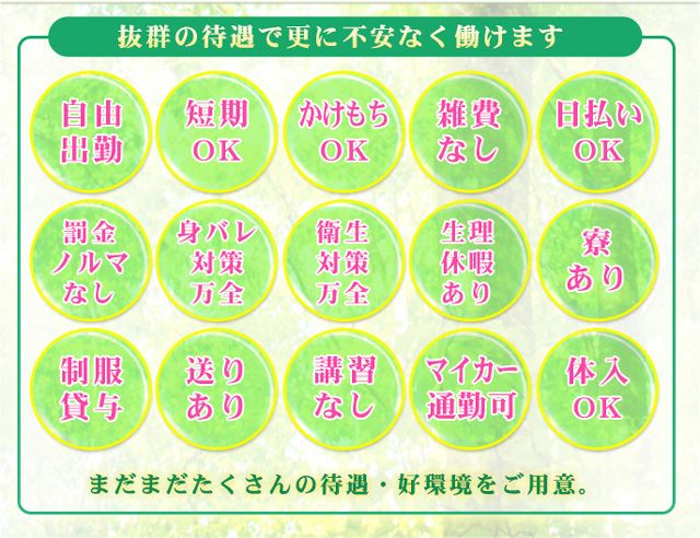 | 勤務日 | 完全自由出勤制 週1日・月1日からでもOKです。 |