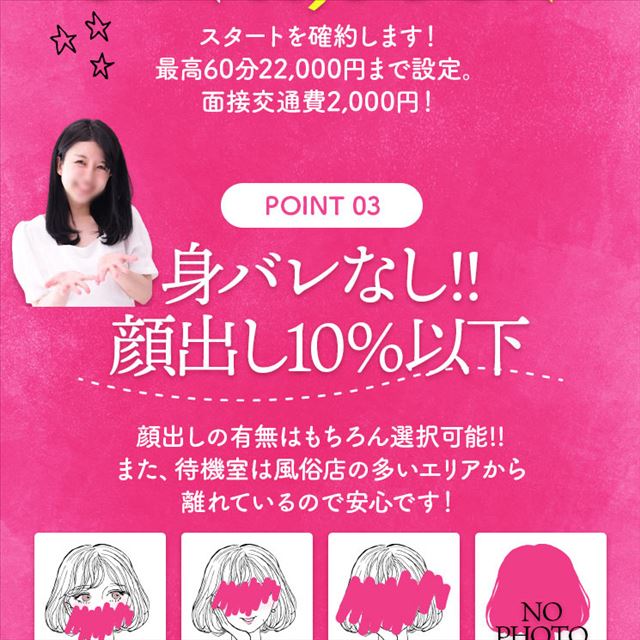 | 勤務日 | 短期間でも大歓迎! 昼職との掛け持ちもOK! |