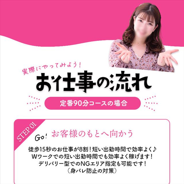 デリバリーは効率が悪いイメージですが、ほとんどのお仕事が事務所最寄りのホテルになりますので、移動時間は数分です。