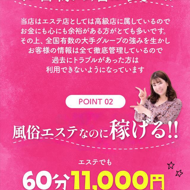 当店はエステ未経験でも簡単に始めれる内容になっていますので、未経験の方の定着率が80%です!