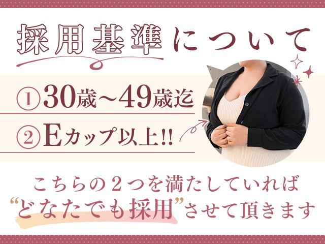 | 応募資格 | 30歳以上&Eカップ以上の方 |