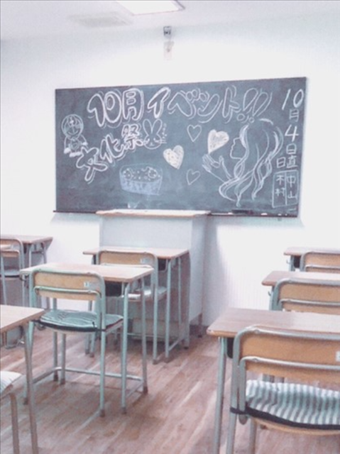 学校でGOGOというお店の名前通り、学習机と椅子がピシッと並んでいる店内はまるで学校みたい!季節やイベントにあわせた黒板アートもかわいい♡制服も着こなしアレンジが自由なブレザーだし、高校のときを思い出しながら楽しく働けちゃう♪