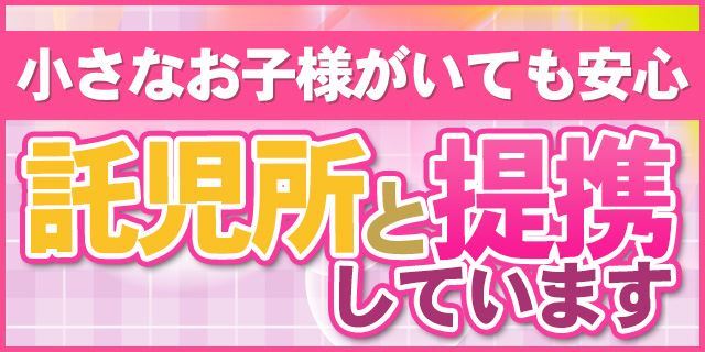 なんと言っても安心・安全が一番。小さなお子様をもつママさんも安心できる優良の託児所と提携しており、リーズナブルな金額も隠れた魅力です。
