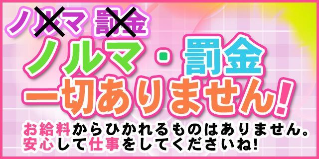 出勤ノルマや急な欠勤や遅刻早退で罰金と称してお給料から差し引いたりすることはありません。写メ日記のノルマもありませんからストレスフリーで働けます。