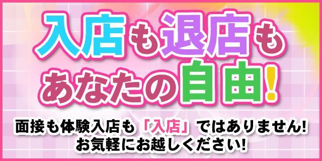 体験入店随時受付中です。面接後すぐに体入も可能です。ご希望の場合は免許証などの身分を証明できるものをお持ちください。正式に入店するかどうかは体入後に決めてください。その時に、もし頑張れると思って入店を決めていただけたら私達はとても嬉しいです。高額バックと高い集客力で日給5万円以上も可能です。勤務時間が長ければ1日で10万円オーバーも可能ですし実際に達成している女の子が続出中です。