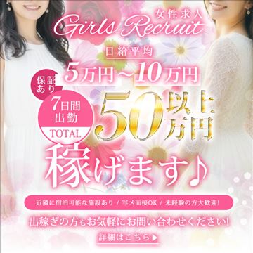 お店に在籍しているキャストさんは、地元はもちろん全国各地からいらっしゃってます。勤務期間中の住まいにも対応しておりますので宿泊施設の心配は無用です。私たちは女の子の働きやすい環境を作り、たくさんお金を稼いで頂く事を一番に考えて運営しています!<完全自由シフト制>あなたのプライベートに合わせて働いていただけますよ。<今…