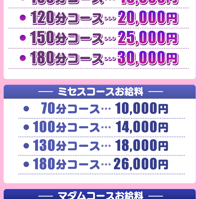 あらゆる年代の女性が活躍できる環境が整っているのですが圧倒的に20代・30代の女性が足りません。働きながら女性としての魅力を高めて内面も外面も美しくなれるお店作りを目指しており、やる気があって笑顔ができる女性なら即採用します。入店していただいた女性には最大限のサポートと確実な高収入をお約束。業界トップクラスの高額バックで効率よく希望額以上に稼いでいただきます。自分のライフスタイルを崩さずに働ける自由出勤だから、主婦業の合間や普段の仕事帰りなどの時間を利用してお仕事出来る上に、1日たった数時間で高収入に直結します。未経験者も今いるお店に満足していない現役の女性もスタッフ全員であなたの魅力を最大限に引き出して収入面でも精神面でも、どちらも満足していただける女性にしてみせます。お店と一緒に成長していきましょう!