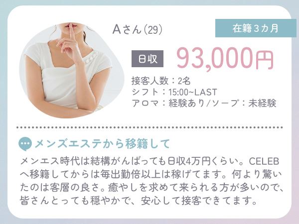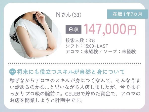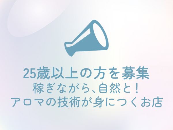 | 応募資格 | 25歳以上の女性 アロマもソープも未経験でOK! |