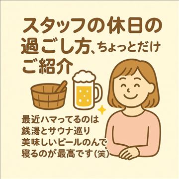 【スタッフの休日の過ごし方、ちょっとだけご紹介】