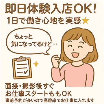 【即日体験入店OK!1日で働き心地を実感★】