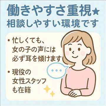 当店は【相談しやすさ】を大切にしています♪「こんなこと聞いたら怒られそう…」なんて空気は一切なし!忙しくても、女の子の声には必ず耳を傾けます😊LINEでもOK、どんな小さな不安もまずは教えてください。うまく話せない方も大丈夫。気持ちを整理する時間も、一緒に作っていきましょう♪キャスト経験のある女性スタ…