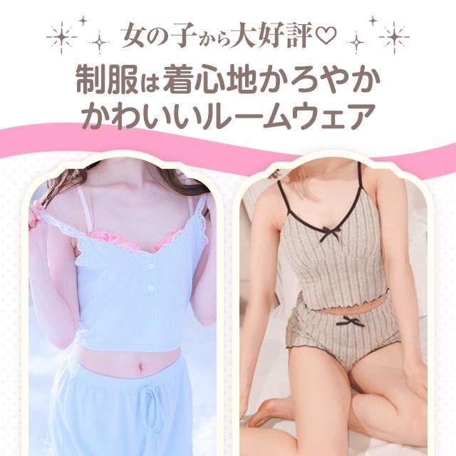衣装はまるで彼女の部屋着みたいな着心地のいいサテン生地のルームウェア、かしこまりすぎないリラックスムードで過ごせる時間はお客様からも高評価。