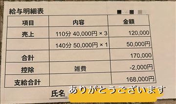 「夜の世界って本当に稼げるの?」そんな疑問を持つあなたへ。当店のキャストは、頑張った分だけしっかり稼げる高収入を実現しています!実際の給料明細を公開しているので、ぜひ参考にしてください。未経験から始めたキャストも、短期間で驚くほどの収入を得ています。あなたも当店で、夢のような高収入を実現しませんか?