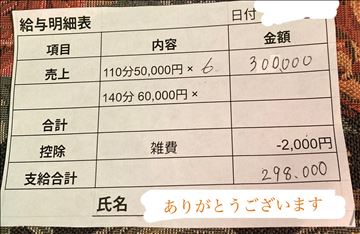 一日12時間勤務、ガッツリ稼ぎたい派のTさん、 目標はマイホーム購入! 当店はノルマ・ペナルティ一切御座いません! また、通常バックに加え、貴方の魅力を最大限に評価するプレミアムバック制度あり! 頑張り次第で収入アップも目指せます♪ 夢を叶える環境はジャパンクラブにお任せ下さい^_^ 応募資格: …