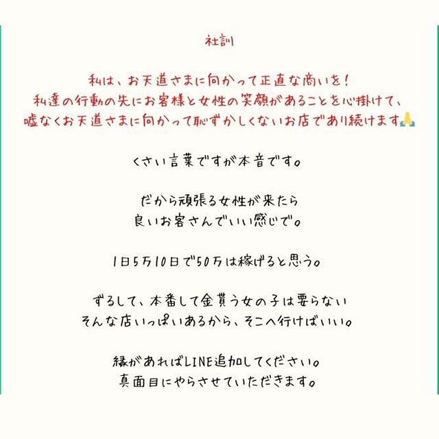 | 勤務時間 | 10時から翌1時の間で貴女のお好きな時間 |
