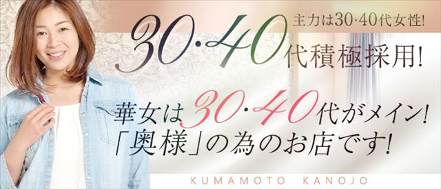 「イエスグループ熊本 華女(カノジョ)」は、30代・40代の女性を中心に活躍できる奥様向け店舗型ヘルスです。若年層との混在もなく、年齢や体形を気にせず自分らしく働けます。未経験でも始めやすいノーマルヘルスで、ハードなプレイは一切なし。スタッフ常駐・禁煙で清潔な店舗環境が整っており、安心してスタート可能。大人女性が稼ぎやすく、輝ける職場です。