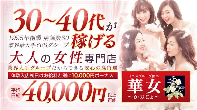 数ある業種や、お店様の求人広告の中から『イエスグループ熊本 華女~かのじょ~』の求人ページをご覧頂きありがとうございます。