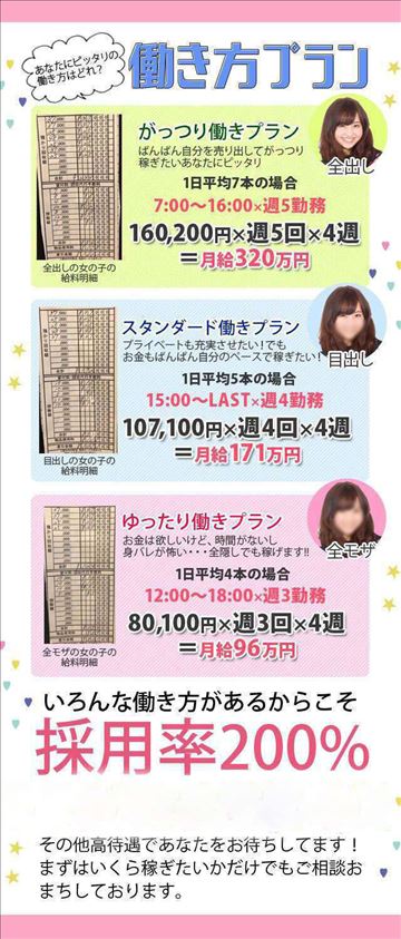 「とにかく今すぐ収入を増やしたい」「生活に無理のない範囲で働きたい」「短期間で目標金額を達成したい」働く理由や目指すゴールは、人それぞれ違って当然です。だからこそ当店では、一人ひとりの目的に合わせた働き方を大切にしています。💡 ライフスタイルも目標金額も十人十色✔ 週に数日だけ無理なく働きたい✔ 空いた時間を使って…