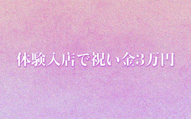 また、面接後に実際の雰囲気を体験できる“体験入店”もご用意。注目は、体験入店でも【入店祝い金3万円(5,000円×6回)】が受け取れる特典付きという点です。本格的な入店前でもしっかり還元される、安心のサポート制度です。