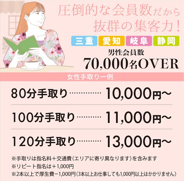 その為、風俗のお仕事が初めての方でも、約7万人の会員様の中から自分に合ったお客様を見つけられます。