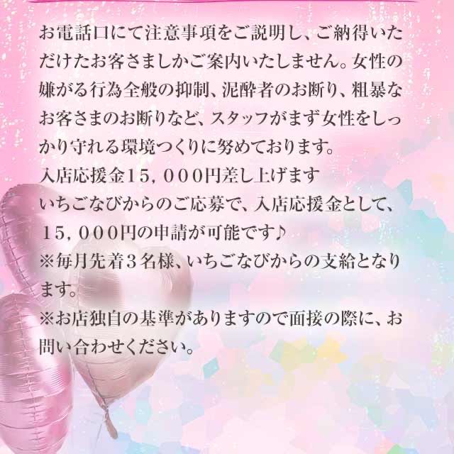 | 勤務日 | 自由出勤制 月曜定休 ※お店からの出勤の催促は一切ございません |