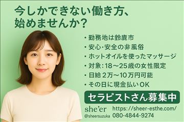 完全個室待機、高収入❣️セラピスト大募集❣️