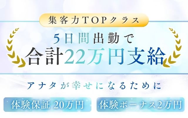 体験入店保証+ボーナス支給!合計『22万円』支給☆