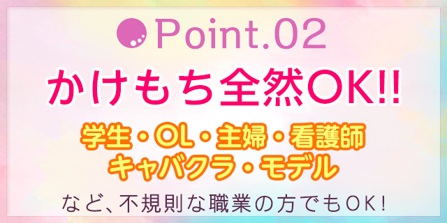 学生、OL、主婦、看護師、キャバクラ、モデルなど不規則な職業の方でも大歓迎です☆