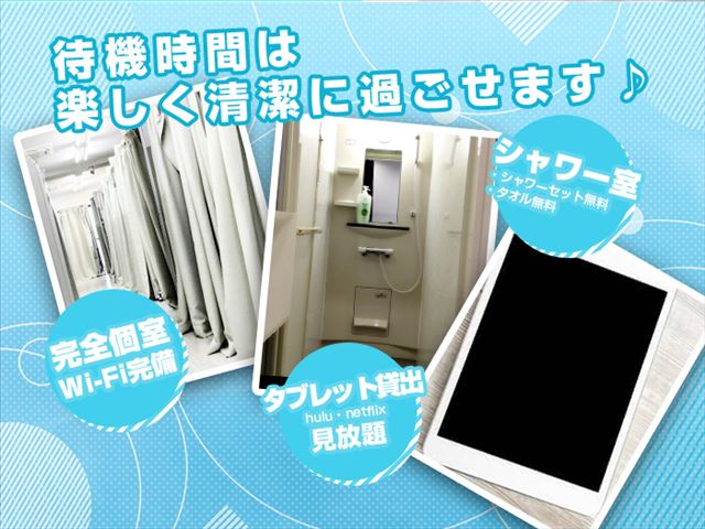 完全個室待機で、Wi-Fiも完備。さらに希望者にはタブレットもお貸しております。お仕事が決まるまでの時間居心地よく過ごせます。