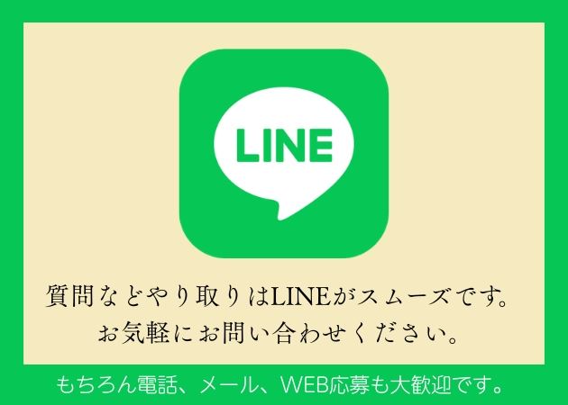 WEB応募・電話・メールのほかにLINEでの応募・問い合わせが可能となりました。