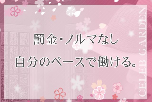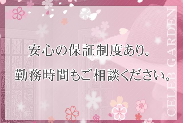 外見のクオリティはもちろん、内面の美しさを持っている女性を積極採用しています。必要なのは生まれ持った美しさではなく、美しくなろうとするための行動と努力です。常に自分自身に磨きをかけている女性にふさわしい待遇を用意しているので、セレブガーデンで頑張って働いて良かったと心から思えるでしょう!